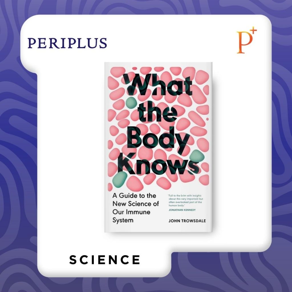 Tubuh manusia menyimpan sistem pertahanan yang jauh lebih cerdas dan kompleks daripada yang selama ini kita bayangkan. Dalam What the Body Knows, John Trowsdale—seorang imunolog terkemuka yang lama meneliti genetika sistem imun—mengajak pembaca memahami bagaimana mekanisme pertahanan ini bekerja menjaga keseimbangan tubuh. Berdasarkan deskripsi penerbit akademik dan tanggapan pembaca di Amazon serta Goodreads, buku ini menjembatani riset mutakhir imunologi dengan penjelasan populer yang tetap presisi. Trowsdale mengurai bagaimana sel-sel imun mengenali ancaman, mengingat patogen, hingga mengatur respons yang tepat tanpa merusak jaringan sehat. Ia juga membahas implikasi penemuan baru terhadap vaksin, penyakit autoimun, dan terapi kanker, menjadikan sains terasa relevan dengan kehidupan sehari-hari. Alih-alih menyederhanakan secara berlebihan, penjelasannya tetap menghormati kompleksitas biologi namun disampaikan dengan alur yang runtut. Narasinya informatif, tenang, dan berbasis bukti ilmiah yang kuat. Buku ini cocok bagi pembaca yang tertarik pada sains populer, mahasiswa kedokteran atau biologi, profesional kesehatan, maupun siapa pun yang ingin memahami tubuhnya dengan lebih mendalam. Di tengah meningkatnya kesadaran global tentang kesehatan dan imunologi, karya ini membantu pembaca melihat sistem imun bukan sekadar tameng, tetapi jaringan komunikasi yang canggih dan adaptif. Bagi pembaca Periplus yang menyukai buku-buku sains berbobot namun tetap dapat diakses, buku ini menawarkan penjelasan komprehensif tentang “kecerdasan” alami tubuh manusia.