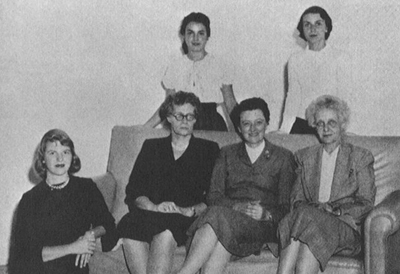Sylvia Plath bersama anggota Smith College Honor Board, Hamper, 1953. Duduk dari kiri ke kanan: Sylvia Plath, Dr. Marion Frances Booth, Helen Whitcomb Randall, dan Alison L. Cook. Berdiri dari kiri ke kanan: Maria Canellakis dan Holly Stair. Foto ini diambil dari The Unabridged Journals of Sylvia Plath suntingan Karen V. Kukil, terbitan Anchor Books, 2000.