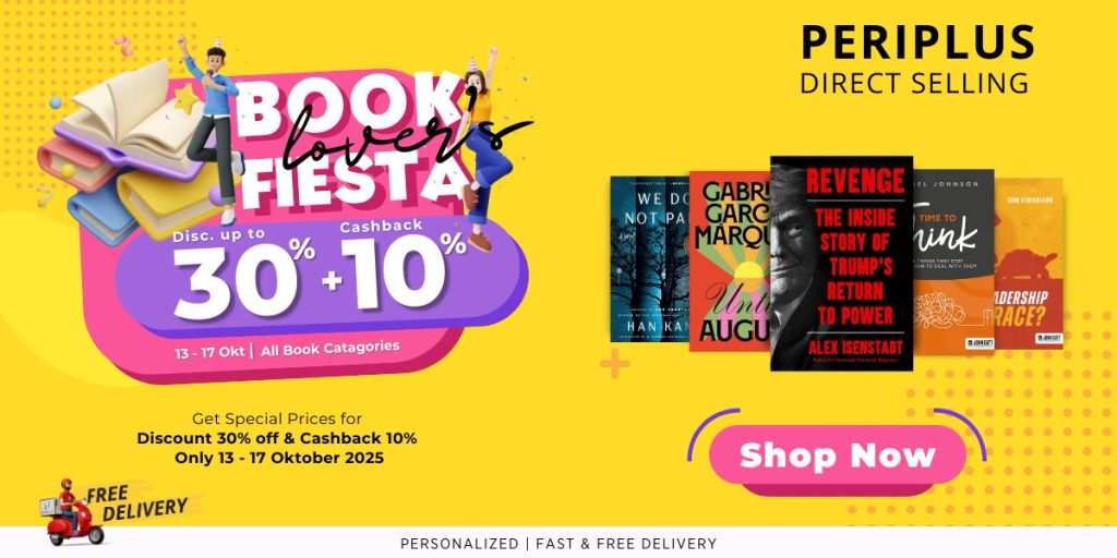 Nikmati keseruan promo Book Fiesta di Periplus Direct Selling! Melalui promo ini, Bibliobesties bisa mendapatkan hingga diskon 30% untuk kategori buku fiksi di Periplus. Selain itu, Bibliobesties juga akan menikmati cashback 10% dalam bentuk poin untuk setiap pembelian. Promo ini hanya berlangsung dari 13 – 17 Oktober 2025, jadi jangan sampai kelewatan! Cek segera katalog promo kami dan temukan buku-buku impianmu dengan harga istimewa!