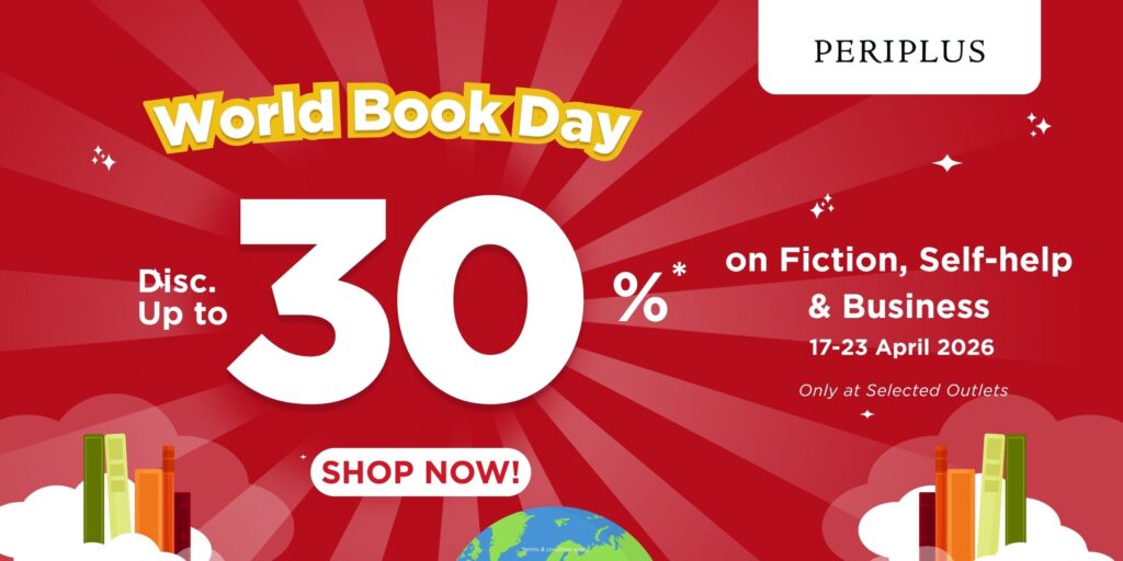Melalui promo World Book Day ini, Bibliobesties bisa menikmati penawaran menarik untuk buku-buku impor berkualitas dengan diskon sampai 30%. Temukan berbagai judul favorit, untuk beragam koleksi di Periplus yang bisa BiblioBesties dapatkan dengan harga yang menarik. Beragam keuntungan lainnya pun bisa diperoleh dari pembelanjaan buku-buku di beberapa toko buku Periplus, situs PERIPLUS.COM, Market Place resmi Periplus, juga layanan WA melalui Periplus Direct Selling. Promo ini berlangsung mulai dari 17 sampai 23 April 2026. Jangan lewatkan!